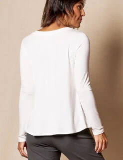Nothing beats our Bamboo 3/4 Sleeve Tee. Soft bamboo knit with just a bit of spandex shapes this all-day favorite. Bamboo is our sustainable choice – antibacterial, breathable, and soft on sensitive skin.Â
