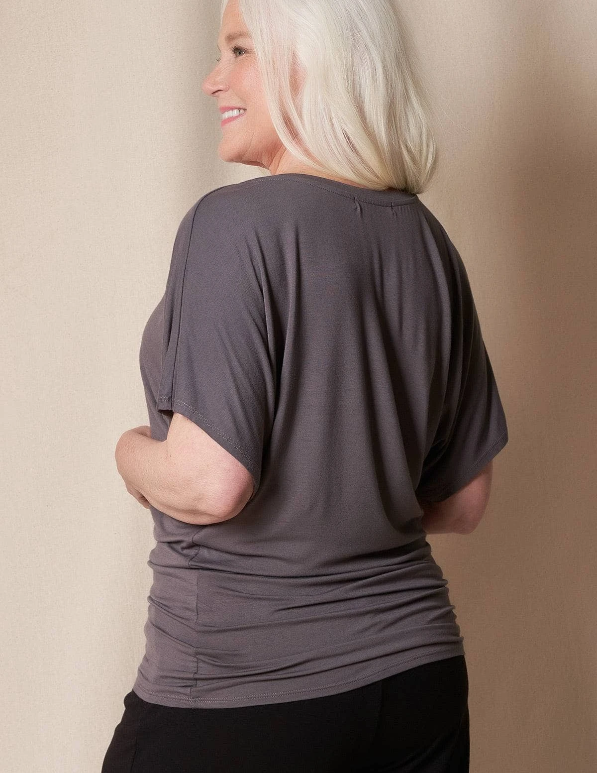 Bamboo Dolman Tunic offers our signature relaxed fit with extra length to cover your bottom or scrunch around your hips. Soft and sustainable bamboo is antibacterial, breathable, and especially comfy on sensitive skin.