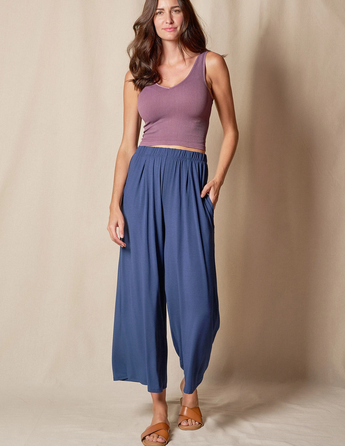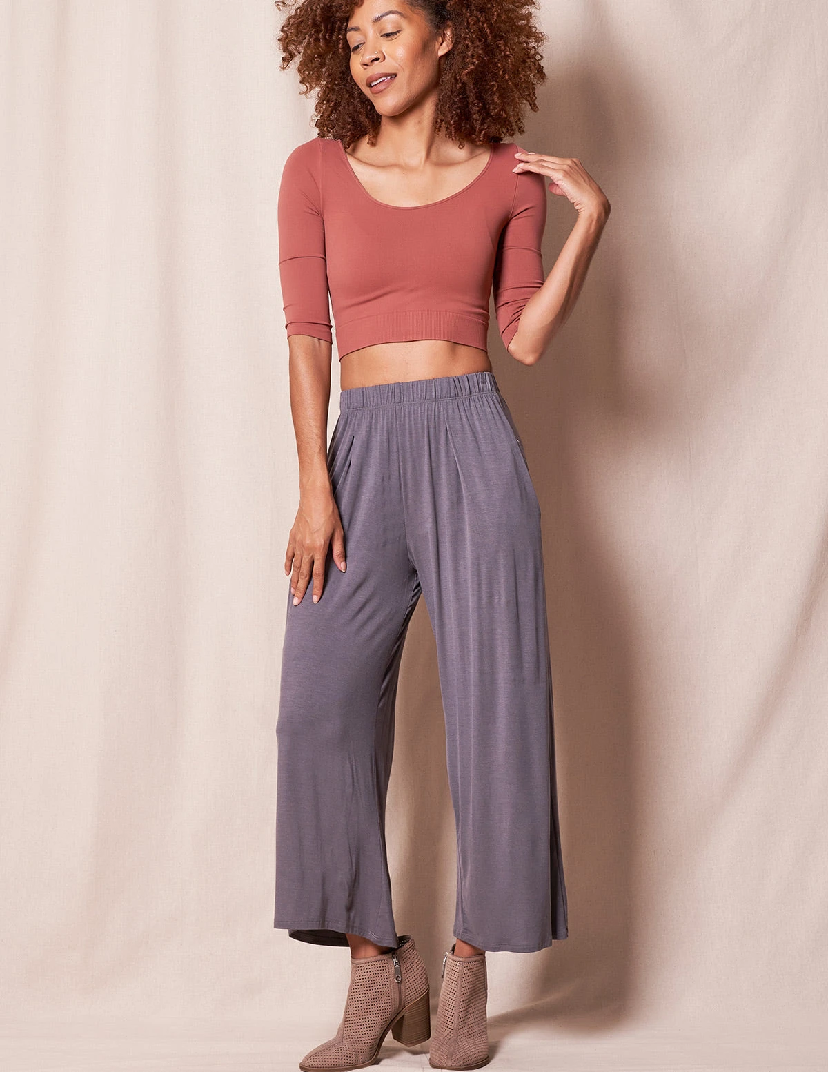 Bamboo Flowy Crop Pants skims easily over the body with a mid-rise elasticized waistband and trendy cropped ankle-length hem. Eco-friendly, sustainable, and super soft on sensitive skin.