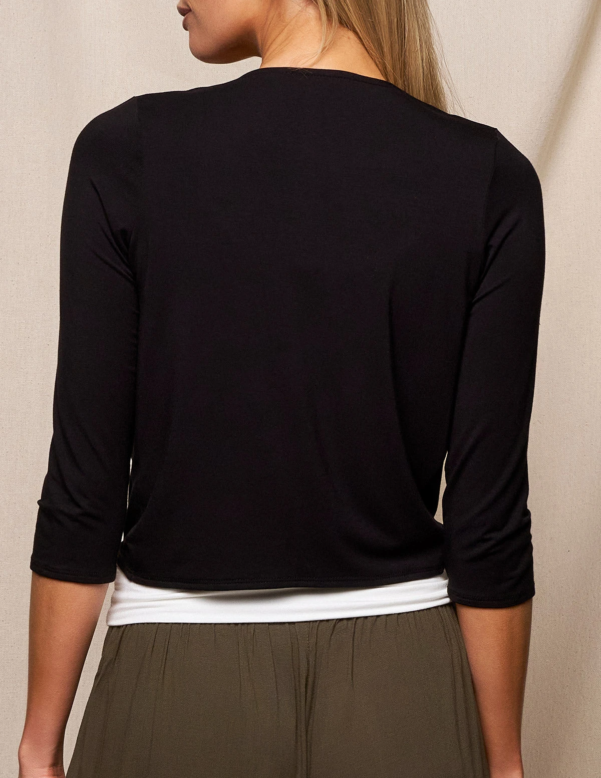Meet the Bamboo Open Front Shrug – your new go-to yoga layer. Made from ultra-soft bamboo, it features 3/4 sleeves and adjustable ties you can knot in front or at the back for a chic wrap-top look. Perfect for class or layering on the go, it blends comfort and style effortlessly.