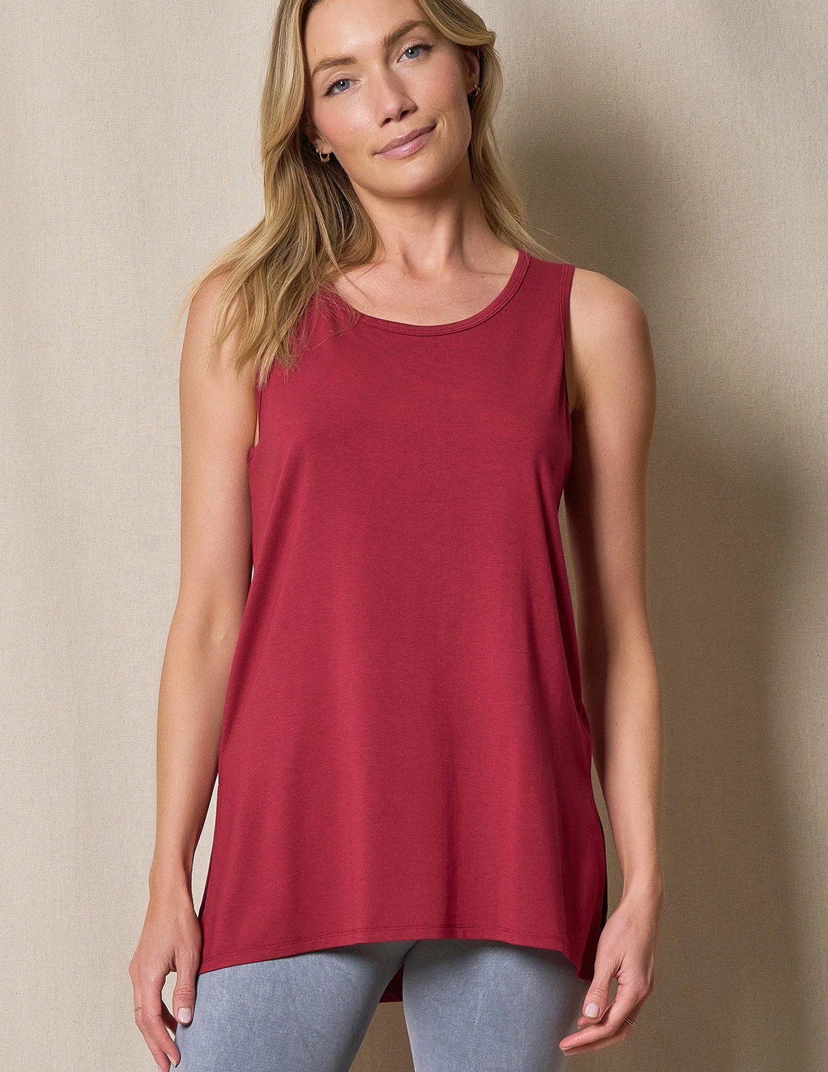 Take comfort to a whole new level with our Bamboo Boxy Tank. Made from a unique blend of bamboo and organic cotton, this softer-than-ever staple is perfect for sensitive skin. Loose-fitting silhouette slightly lowered back hem and understated side slits will make this one of your favorite layering pieces.