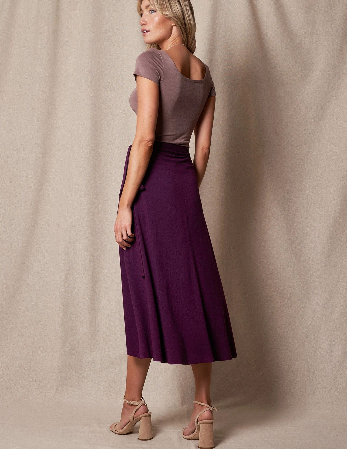 The best basic skirt! Our unique blend of bamboo and organic cotton – now in a stylish wrap skirt with adjustable ties and a gracefully curved hemline. Bamboo is ideal for those with sensitive skin. Super soft with rich color and a luxurious feel.Â