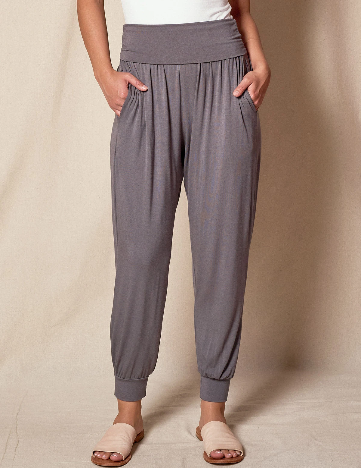 We just gave our favorite bamboo joggers an upgrade – a flat, fold-over waistband and a new, more substantial weight fabric. Comfort crafted from 240 gsm bamboo knit, these joggers offer unparalleled softness and breathability. Perfect for lounging at home or running errands, our Bamboo Harem Joggers redefine relaxation with a touch of elegance.