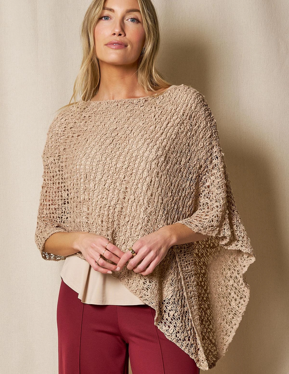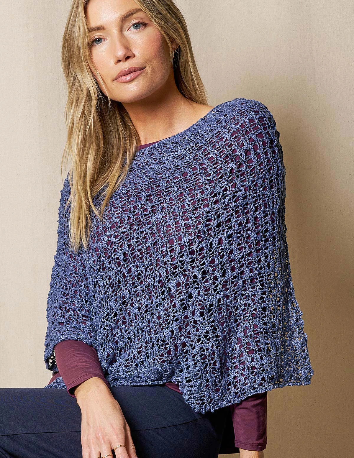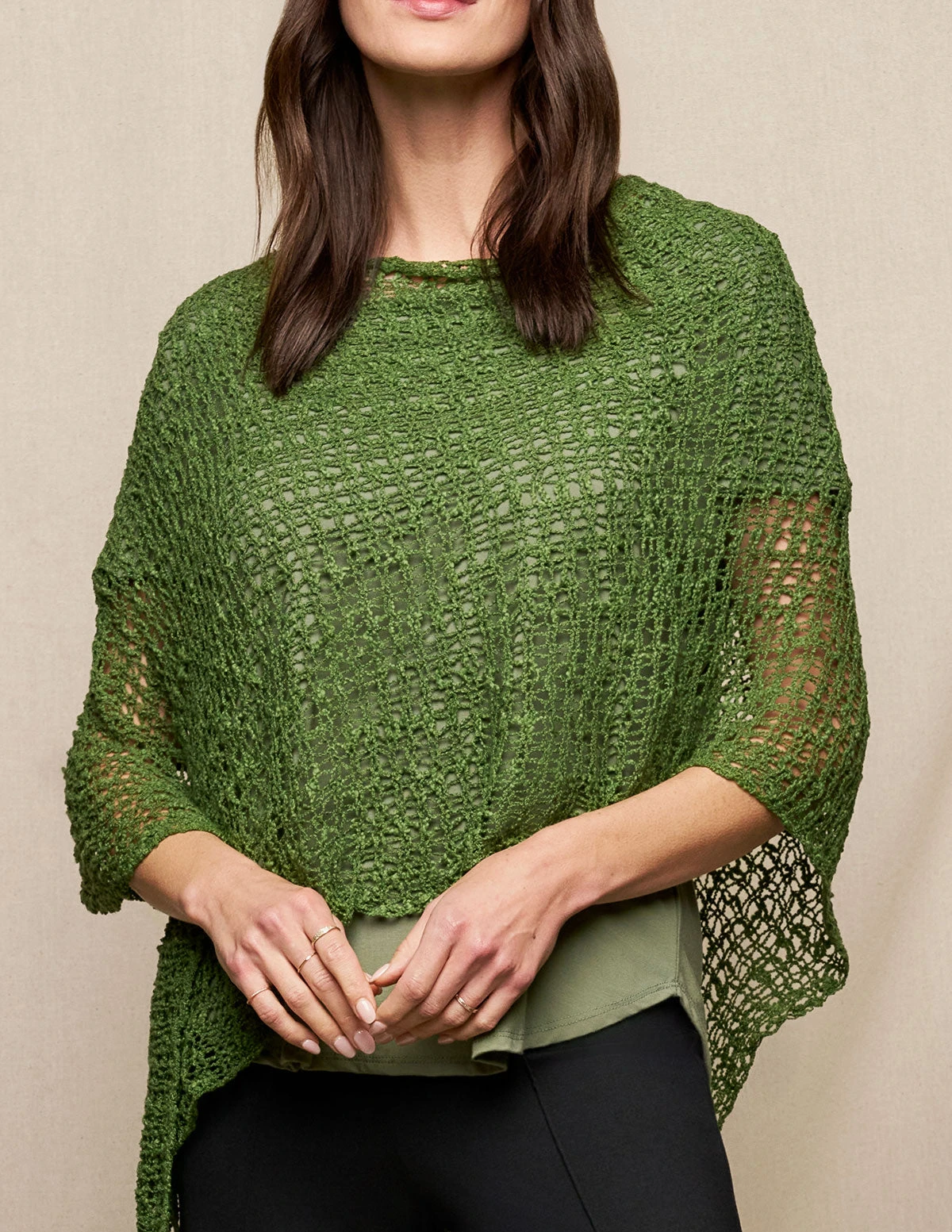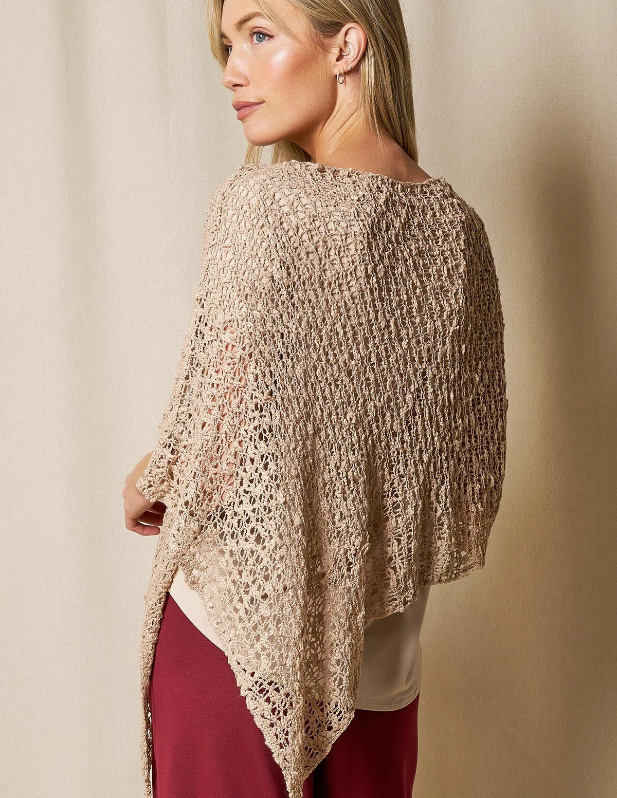 Elevate your basics with this cool and cozy styling piece. Our Handwoven Riva Knit Poncho is styled in a shorter length for fuss-free wear at work, but we love it also as an elegant cover-up for cooler summer nights.